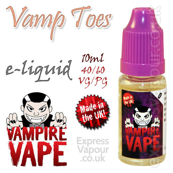 Vamp Toes - Vampire Vape e-Liquid - 40% VG / 60% PG. A 10ml bottle of e-liquid made in the UK by Vampire Vape. Available in 5 nicotine strengths including zero.